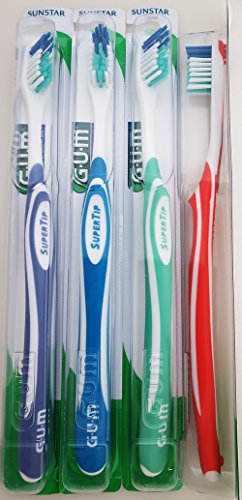 You will have beautiful paintings with GUM 461 Super Tip Toothbrush - Compact - Soft (3 Pack).GUM 461 Super Tip Toothbrush - Compact - Soft (3 Pack) will help your job easier dexGUM® Super Tip® Toothbrush, Compact Soft provides a multi-level whole mouth cleaning plus a tongue cleaner for fresh breath. The GUM® Super Tip® toothbrush is specially designed to clean the hard-to-reach areas at the back of the mouth, including erupting or erupted third molars (wisdom teeth that emerge around 18-22 years of age). This hard-to-reach area can easily allow a buildup of dental plaque in areas that dentists and dental hygienists are particularly concerned about as plaque buildup here may result in periodontal inflammation and infections. The unique brush head consists of three bristle types. The seven tufts of raised Super Tip® bristles are configured so that the tip of the brush head can reach deeper into the hard-to-reach areas toward the back of the mouth. Their increased length helps reach around and behind the end teeth right at the back of the mouth, which are hard to reach. The regular bristles forming the main part of the brush head are soft and gentle with a Dome-Trim® shape to enable cleaning under the gumline, while the bristles on the periphery clean the tooth surfaces and massage the gums. The back of the brush head has a ridged tongue cleaner that will remove odor-causing bacteria from the surface of the tongue and will stimulate and clean the surfaces of the cheeks during toothbrushing.